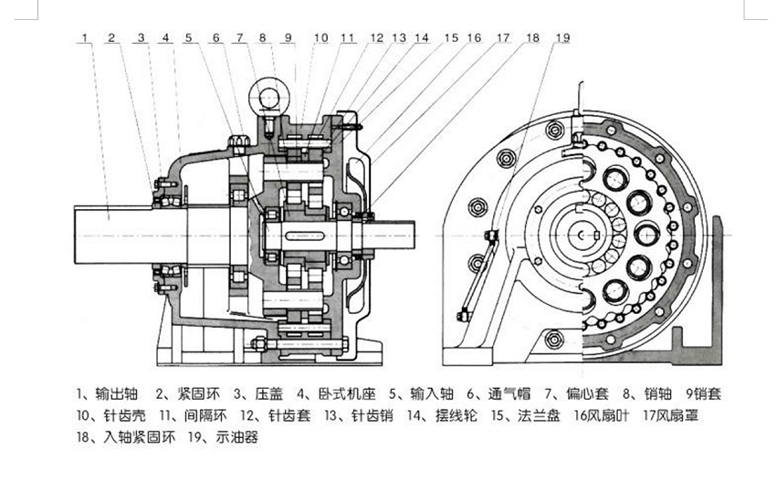 BWD臥式擺線針輪減速機(jī)結(jié)構(gòu)圖: